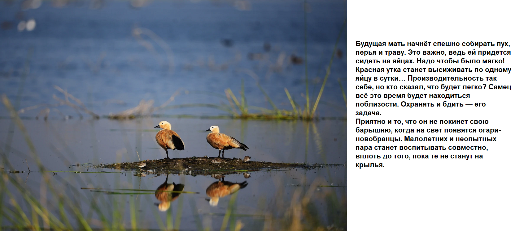 Этих ярко-рыжих уток не заметить невозможно. Знакомьтесь - огарь или красная утка. Свое название эти утки получили, вероятнее всего, именно за яркий окрас, напоминающий пламя. Его латинский видовой эпитет ferruginea также относится к рыжему («ржавому») окрасу птицы.Красивущая огненная птица!