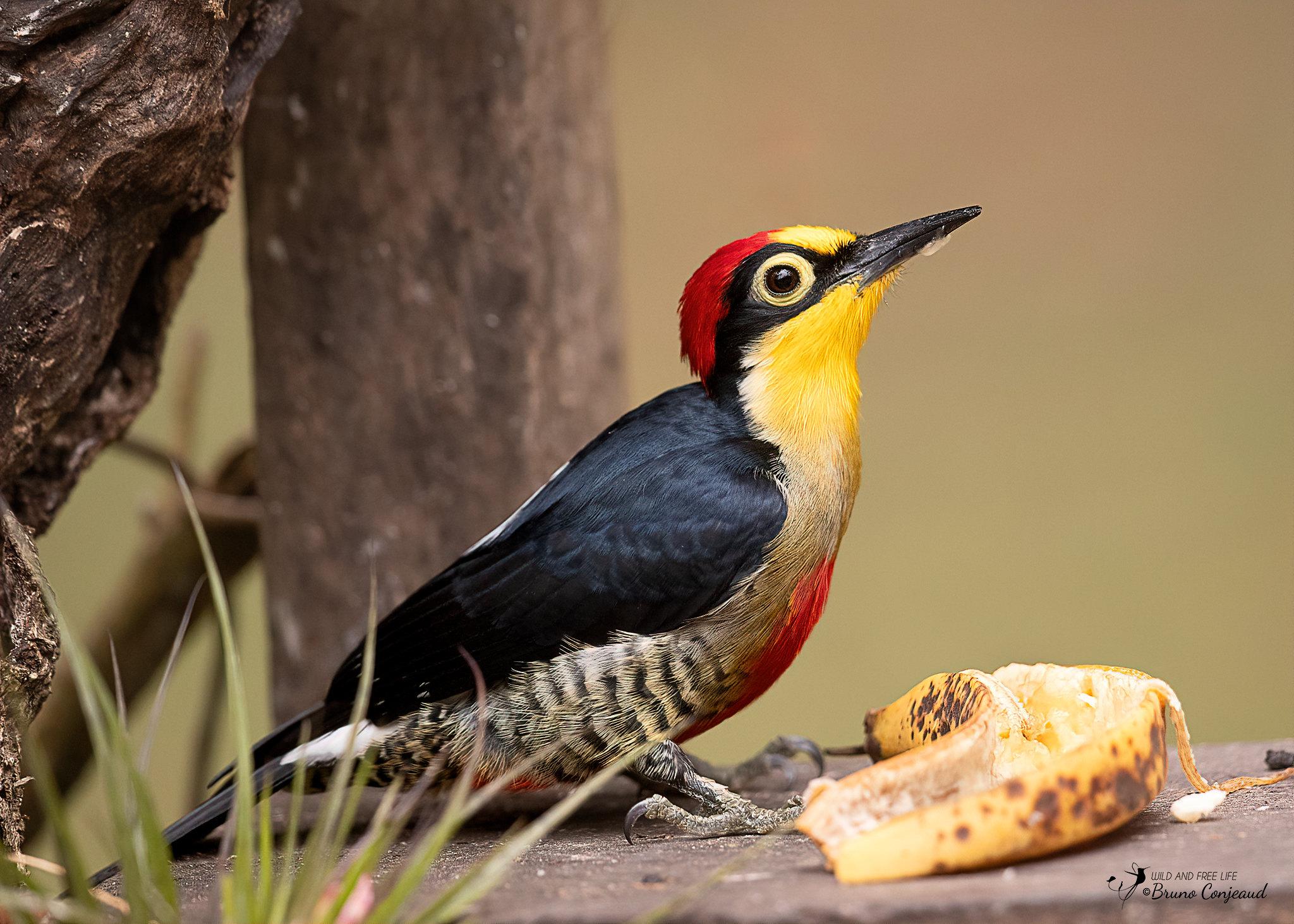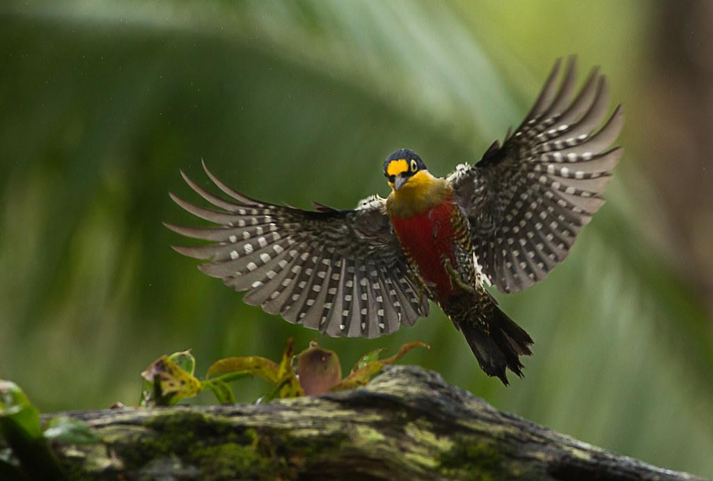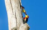 Желтолицый меланерпес (желтолицый дятел) – небольшая (17-18 см) дятловая птица, распространенная в Центральной и восточной Бразилии, северо-восточной Аргентине и восточном Парагвае. Необычайно красочная и яркая, даже самки. Только у самцов «шапочка» красная, а у дам – черно-синяя.Красивущая птица, радость для глаз!