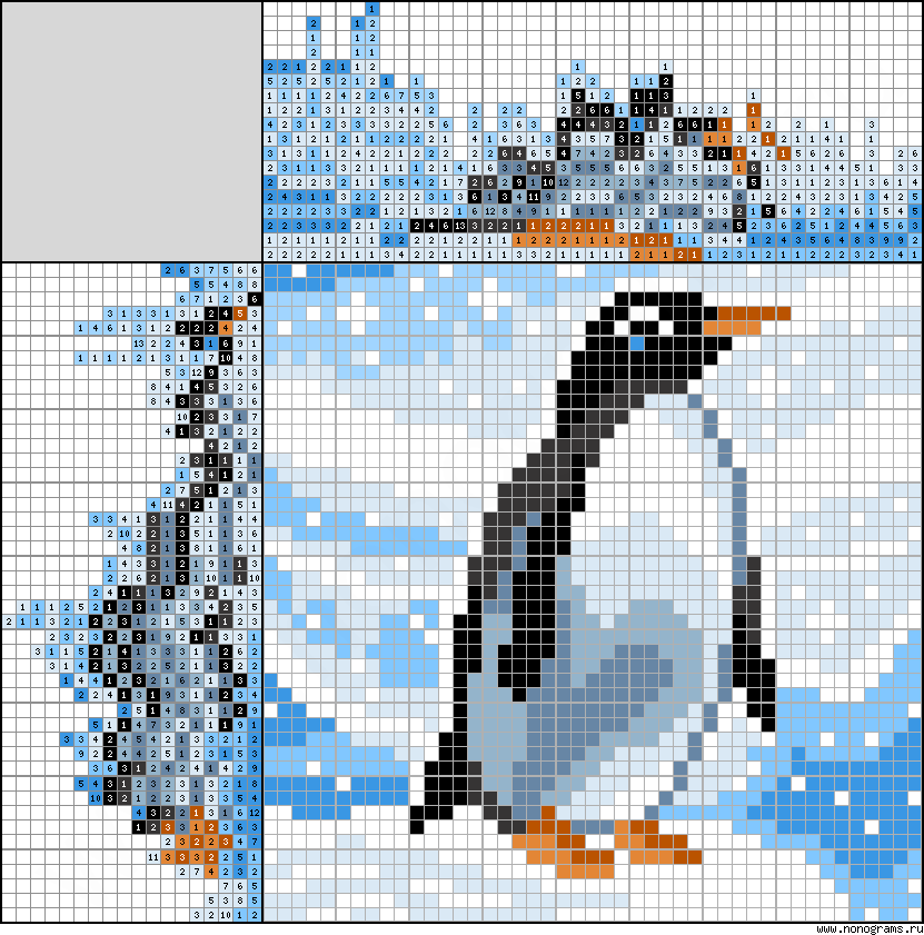 Спасибо. Симпатичная птичка. Но разгадывать замучилась. Черный с темным серым совсем не различаются.