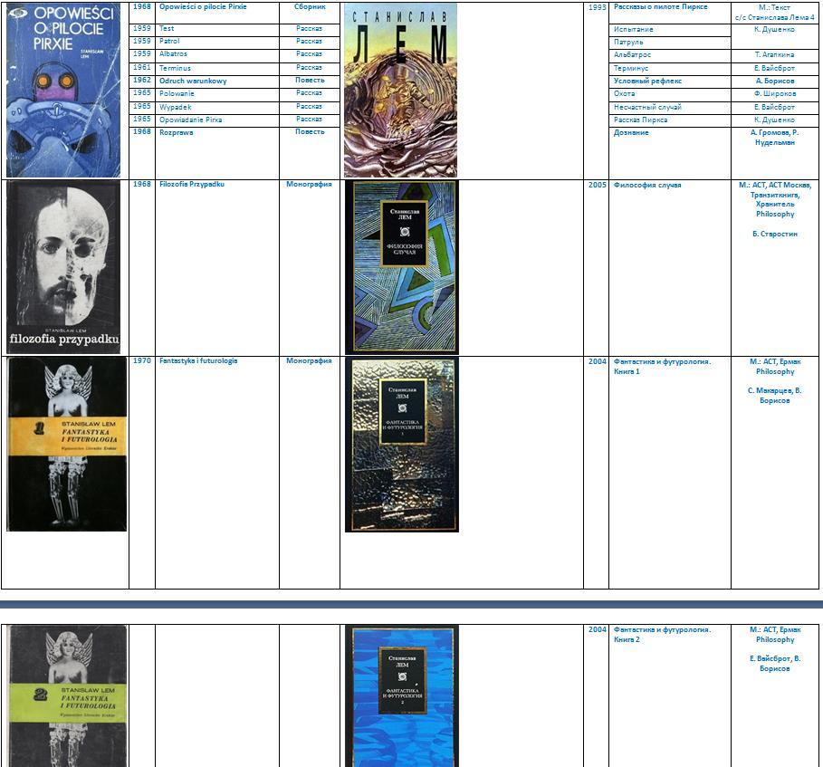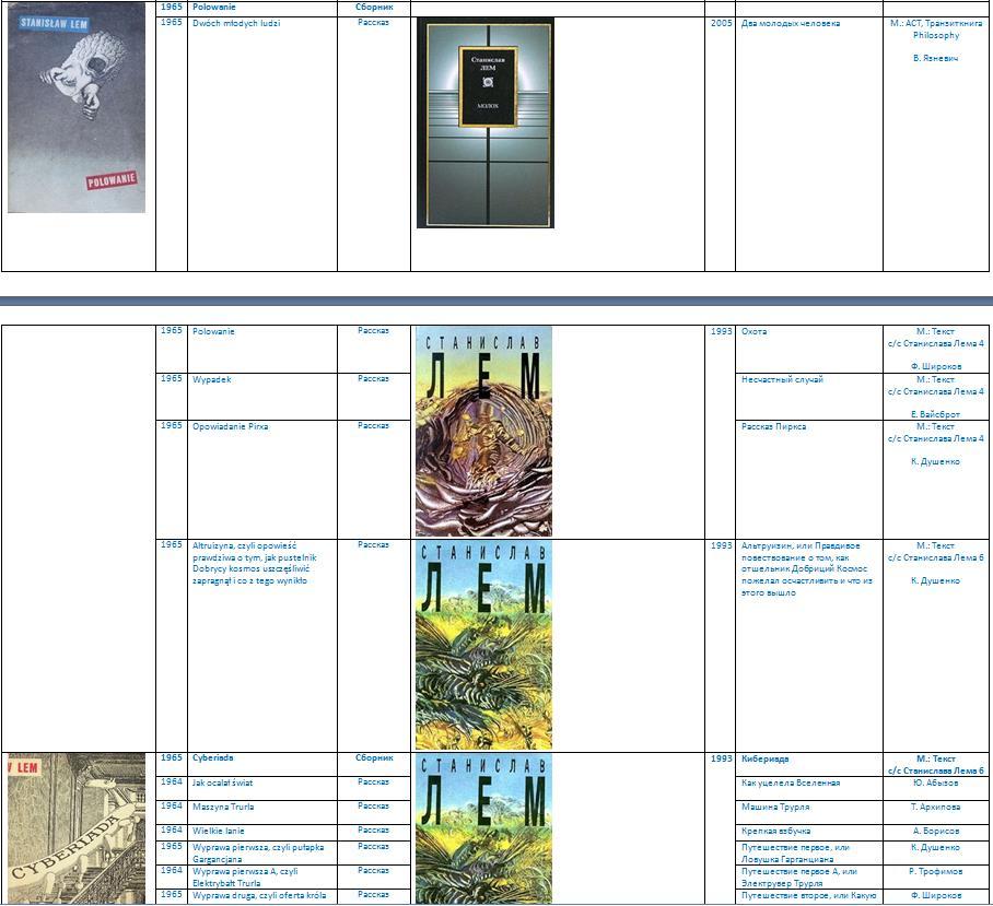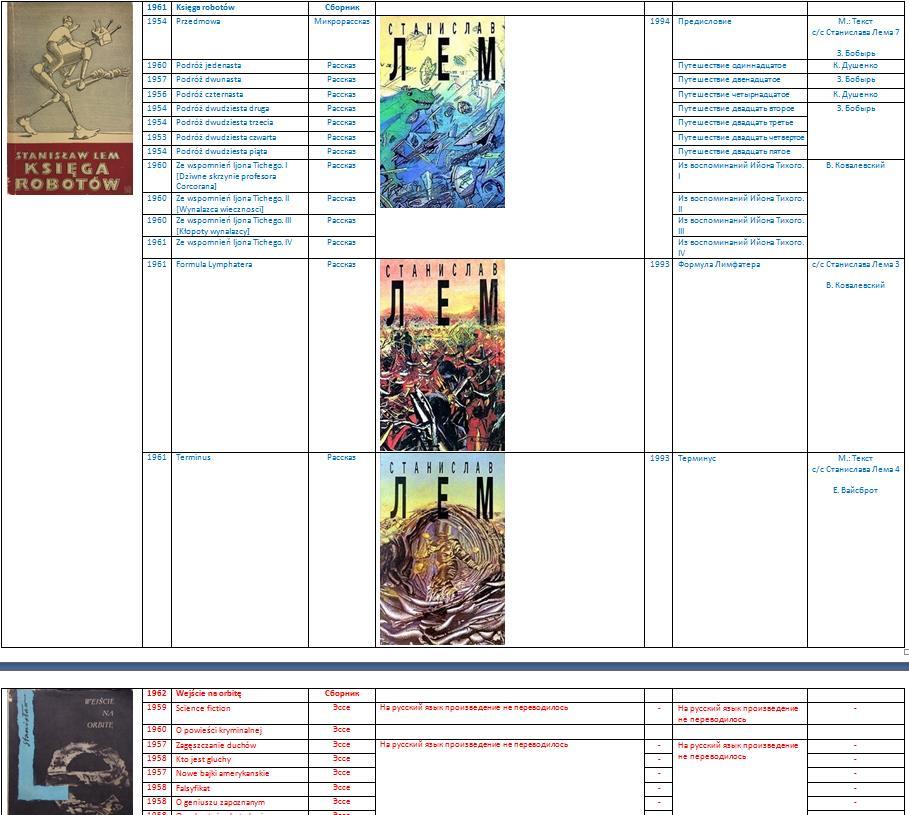 А вот с творчеством Лема всё оченно сложно... Там уже 51 страница, покажу часть фрагментов классификации (вот так каждый сборник приходится копать, чтобы понять что есть, чего нету и чего где искать, в каком порядке писалось и как читать)