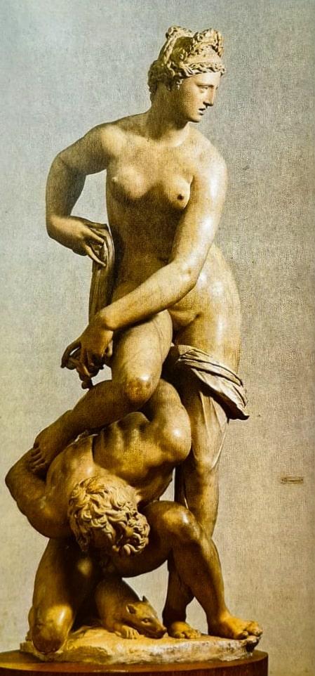 Ваш фрагмент - из скульптуры «Флоренция побеждающая Пизу». Так я думала, это Вы мне скажете, что я ошибаюсь, и у Джамболоньи есть какая-то другая, похожая, с сабинянками.