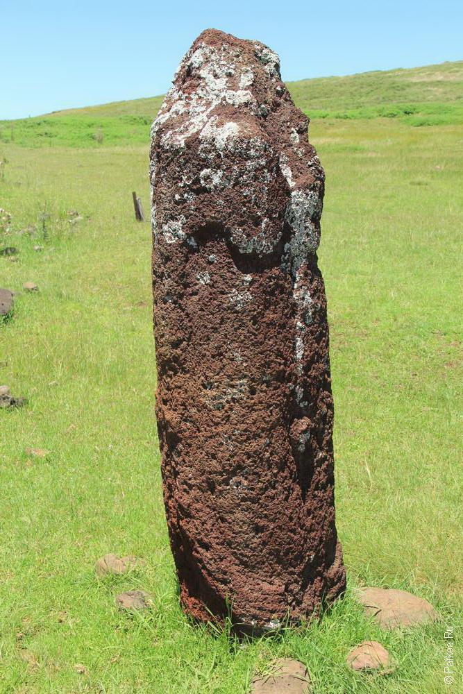 Оказывается, на острове Пасхи среди множества истуканов-моаи, изображающих мужчин, быи обнаружены несколько (12?) моаи-женщин. К сожалению, в инете показаны нечеткие их фото. Однако, автор этого кроса попробовала придать больше женственности этим статуям и снабдила их волосами, ну и что, что красными))