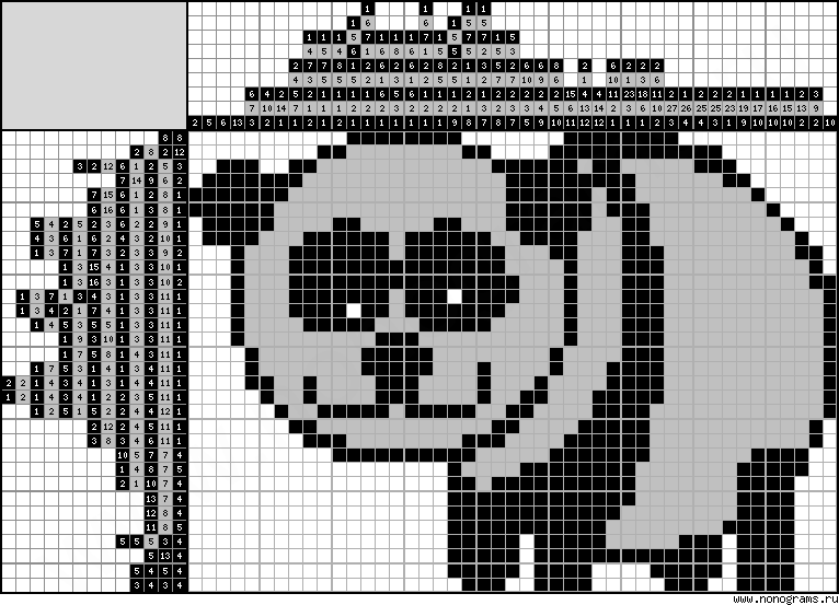 Обратите внимание на расположение черных пятен вокруг глаз у"панды" на нонограм и у моего "шедевра")) А заодно похвастайтесь своим "шедевром" то ли кита, то ли дельфина, который не понравился вам в нонограм от 15.05.25. И оценивайте от себя, а не от всех))