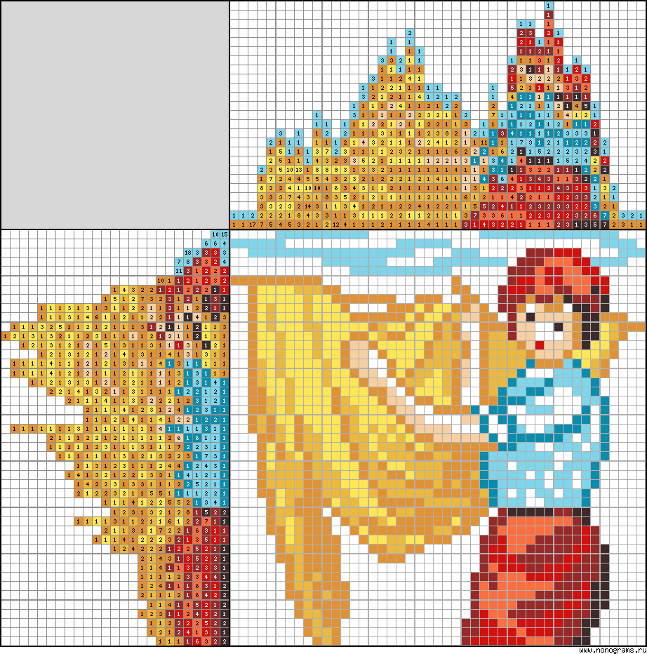 Замечательный во всех отношениях кросс:и интересно было разгадывать, и чудесная картинка,и выразительная палитра.А главное- сюжет,мне такие особенно нравятся. СПАСИБО
