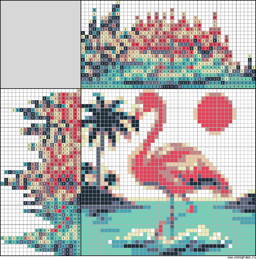 Японский кроссворд «Фламинго у моря»