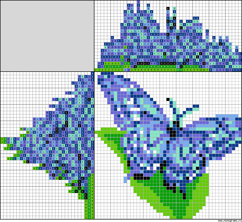 По палитре ожидала голубой цветок. А получилась изумительной красоты бабочка. И не простой кросс, интересный.