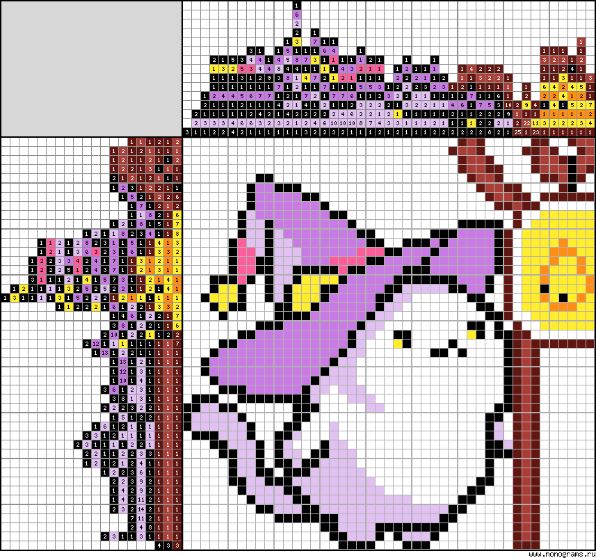 ответитьЕсли бы в названии не был указан кот, то я бы его не распознал. Фиолетовой может быть любая сказочная скотина, лишь бы рогов не было.
