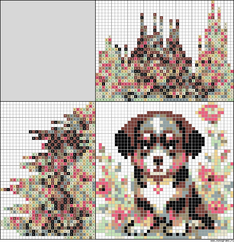 Японский кроссворд «Щенок в цветах»