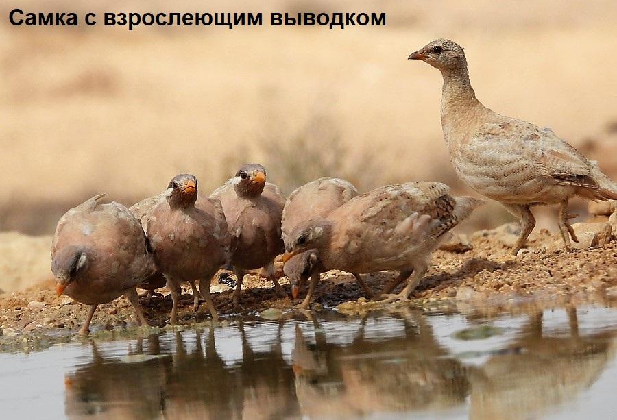 Летом живут неподалеку от источников воды – долгие перелеты для водопоя птице не свойственны. К местам водопоя слетаются шумными стайками, примерно по 10 птиц. Однако останавливаются метрах в 50 от источника воды. Затем к нему направляются осторожно и бесшумно. Напившись, некоторое время (30–45 мин) держатся вблизи источника, расправляют оперение, после чего вновь идут к воде.