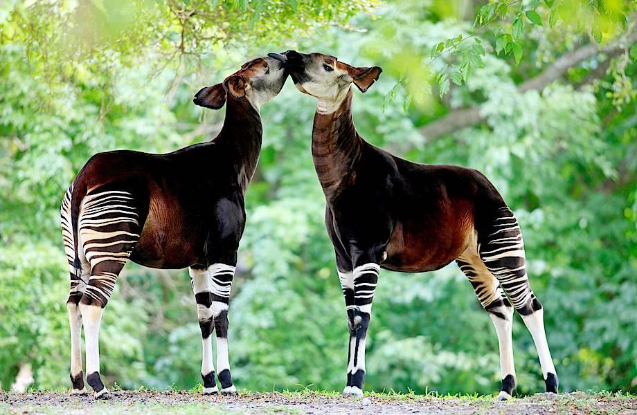 ответитьМногих интересовал вопрос кто окапи на самом деле – лошадь, зебра или жираф? Его внешний вид сочетает в себе все признаки этих животных. Как оказалось, этот редкий вид парнокопытных принадлежит к семейству жирафовых. По-видимому, из-за доступности провизии в джунглях, эволюционно окапи не понадобилась длинная шея, как у степного жирафа, которому в степи за листвой приходится высоко тянуться.Прекрасный портрет прекрасного животного!